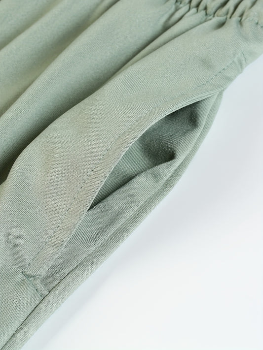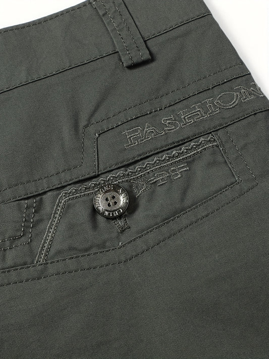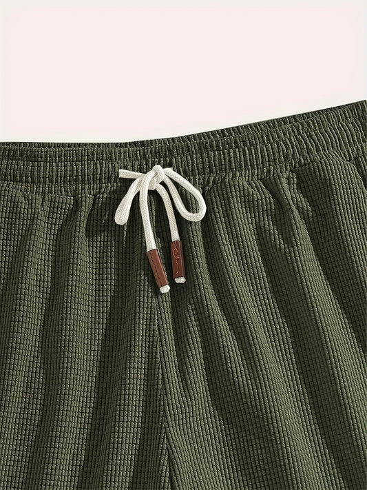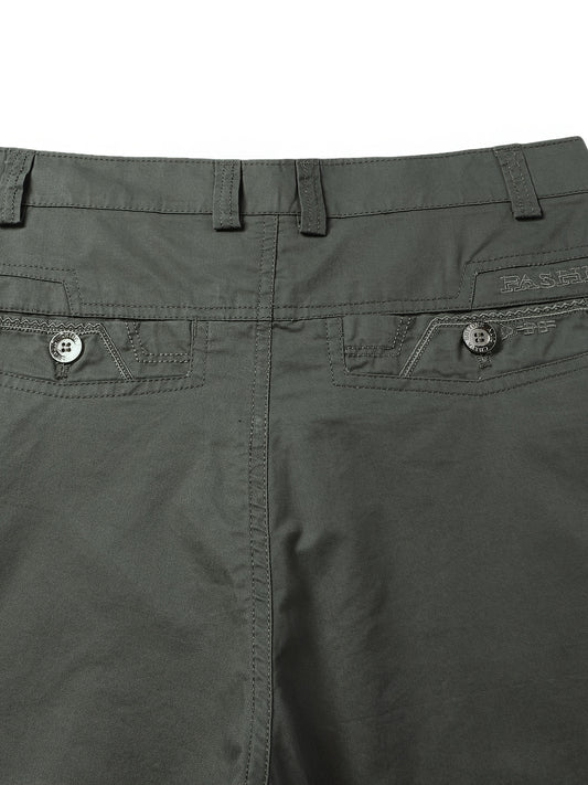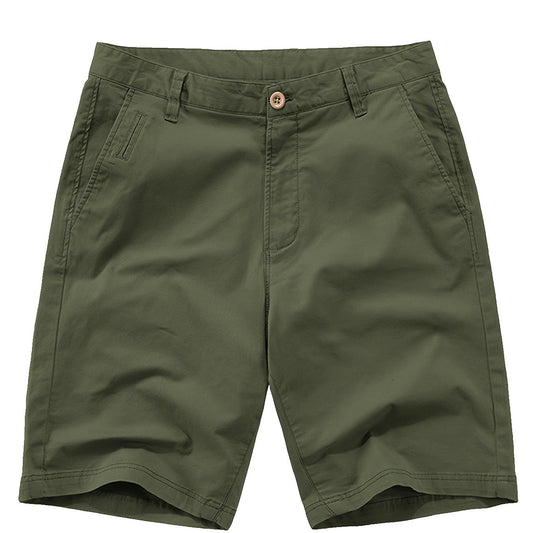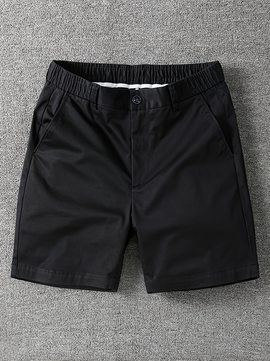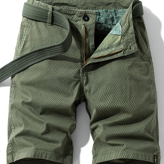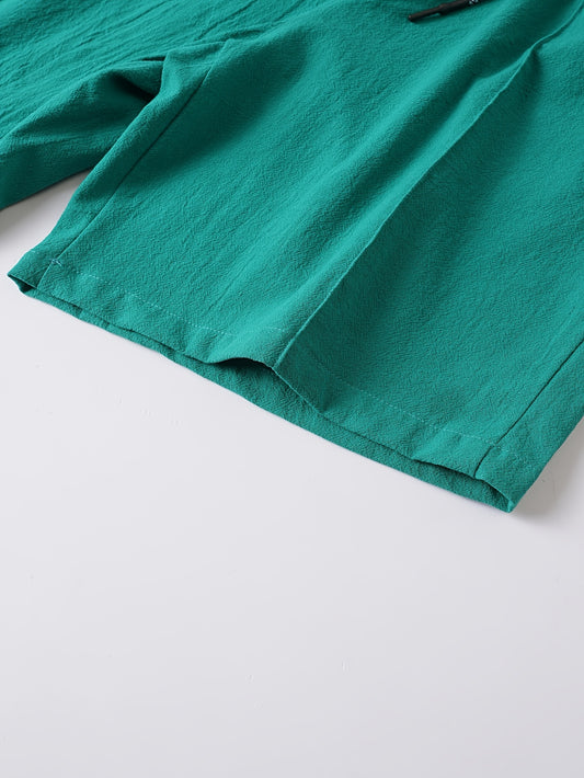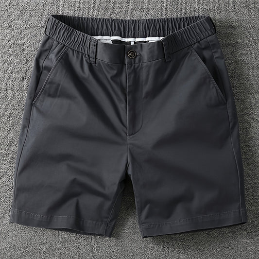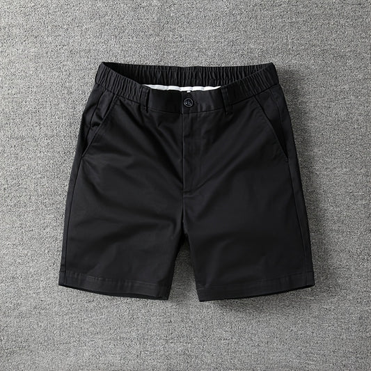 Men's Summer Micro-Elastic Casual Shorts - Four-Tenths Length, Olive Green, Mid-Rise Waist, Elastic Waistband, Side Pockets, Lightweight & Breathable for Casual Attire