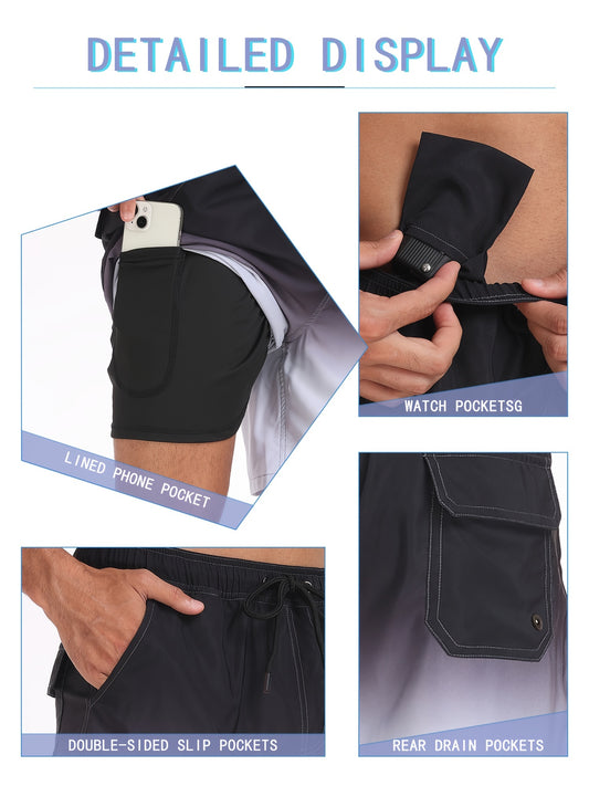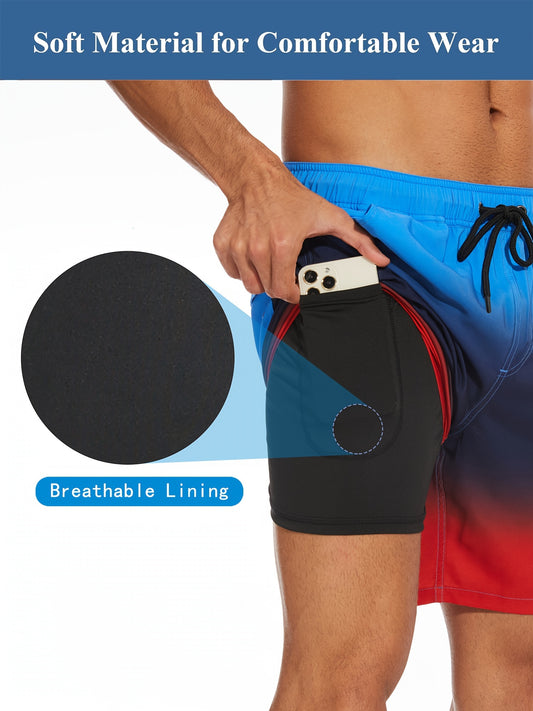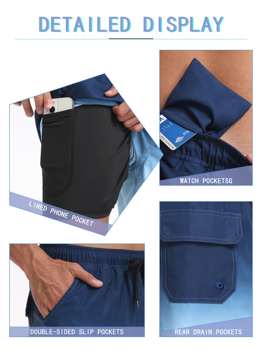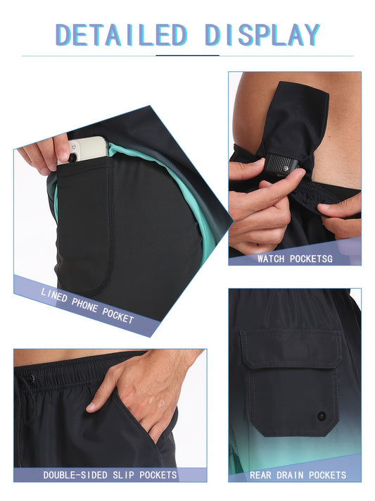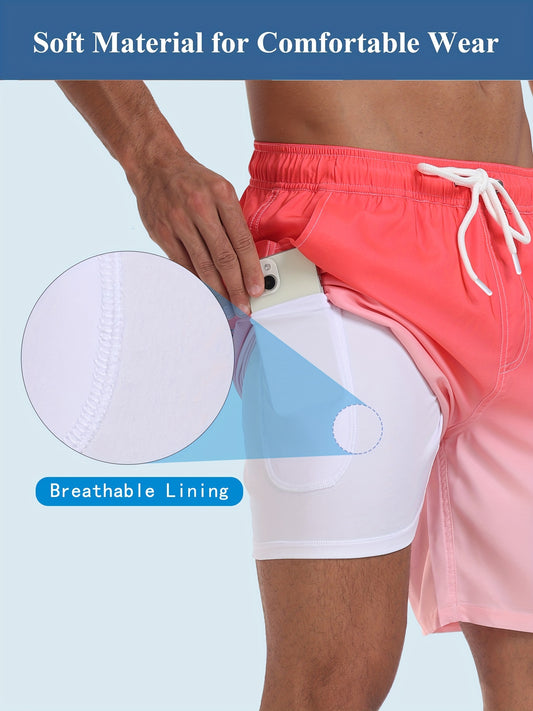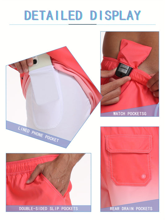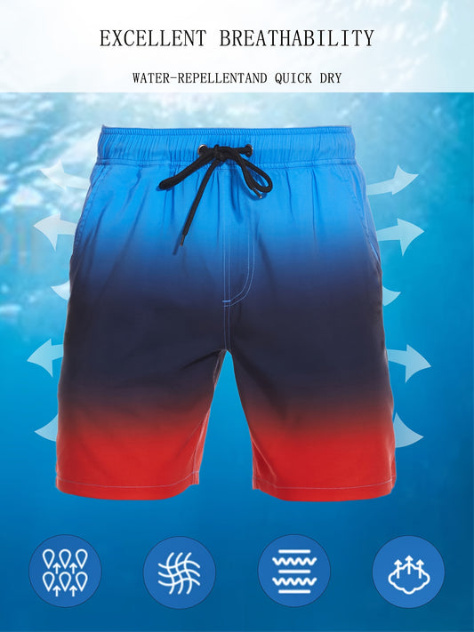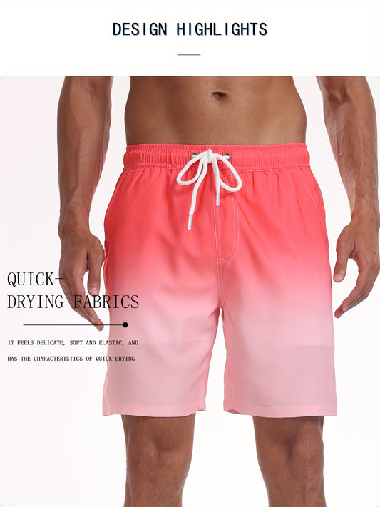 Men's Gradient Beach Shorts - Quick-Dry, Drawstring Waist, Pockets, Polyester, Ideal for Summer Activities & Casual Wear, Casual Summer Shorts|Summer Fashion Shorts|Lightweight Shorts