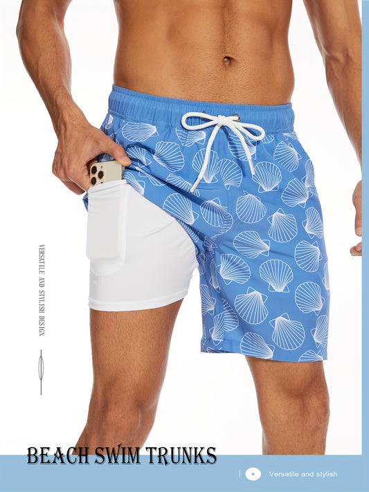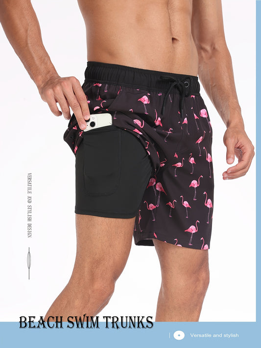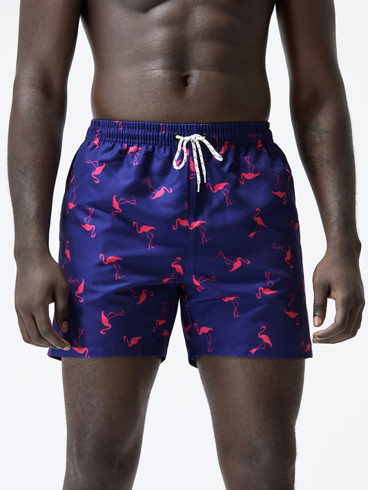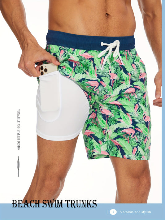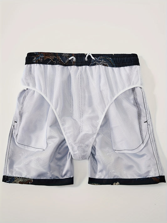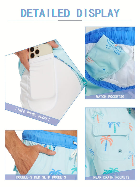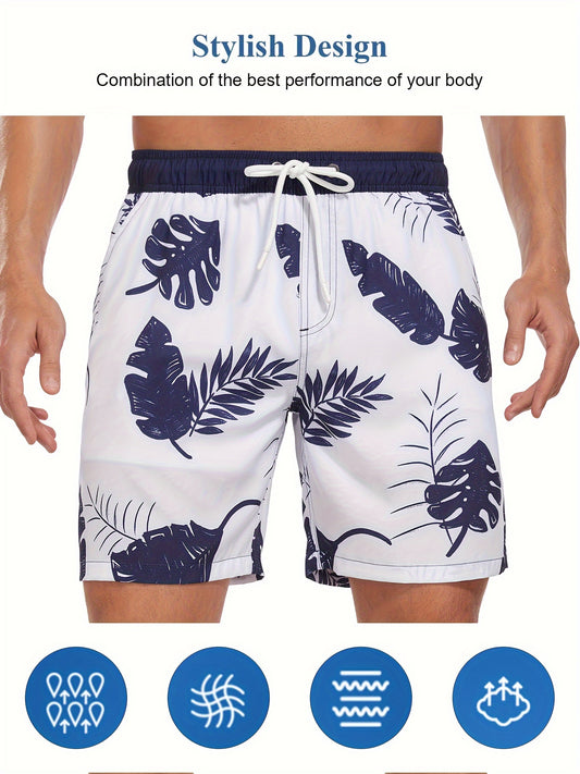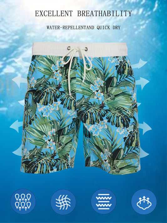 Men's Quick-Dry Beach Shorts with Tropical Palm Tree & Palm Leaf Print - Breathable Stretch Fabric for Summer, Outdoor, Hiking, Swimming - Machine Washable Casual Athletic Shorts, Outdoor Activewear, Summer Shorts