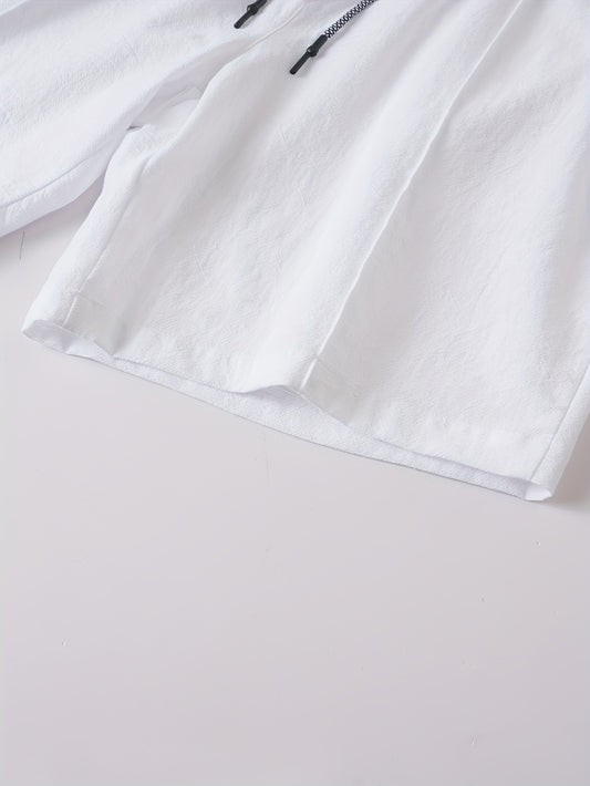 WW-MMDK Men'S Linen Shorts - Regular Fit, Solid Color, Non-Stretch, with Pockets, Ideal for Beach & Casual Wear, Beach Shorts | Sporty Linen Shorts | Woven Texture