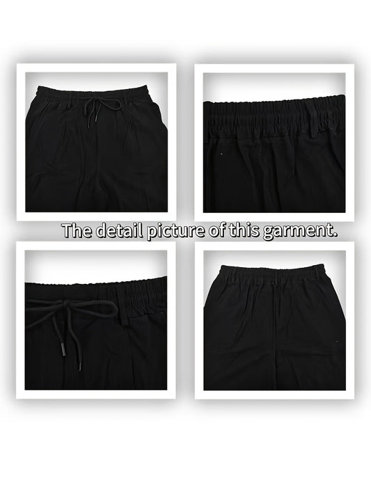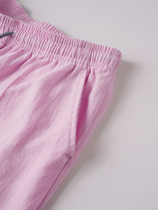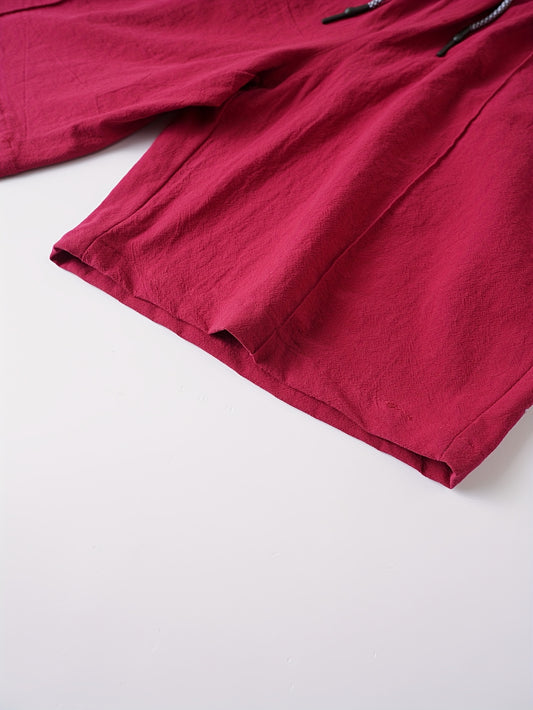 Men's Summer Shorts, Drawstring Elastic Waist, Straight Leg Solid Color Breathable Casual Beach Capri Pants - Three-Pack