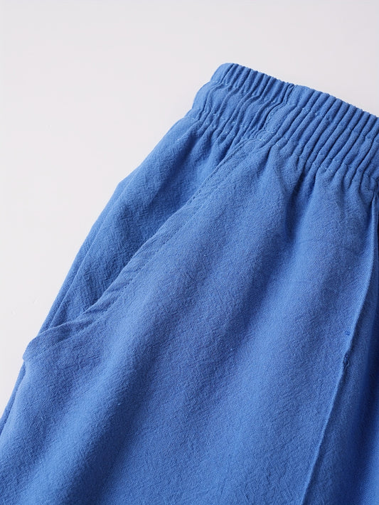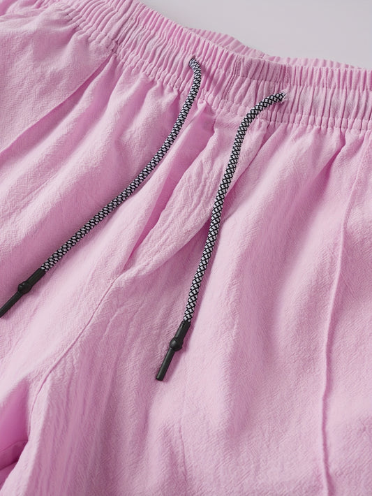 Men'S Casual Knee-Length Shorts - Breathable Loose Fit with Elastic Drawstring Waist, Solid Color Regular Fit for Travel, Home & Sports -Sports Shorts | Casual Style