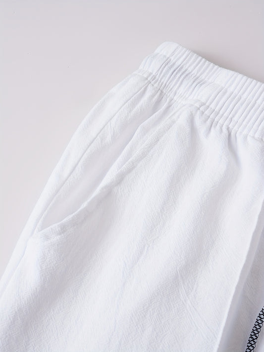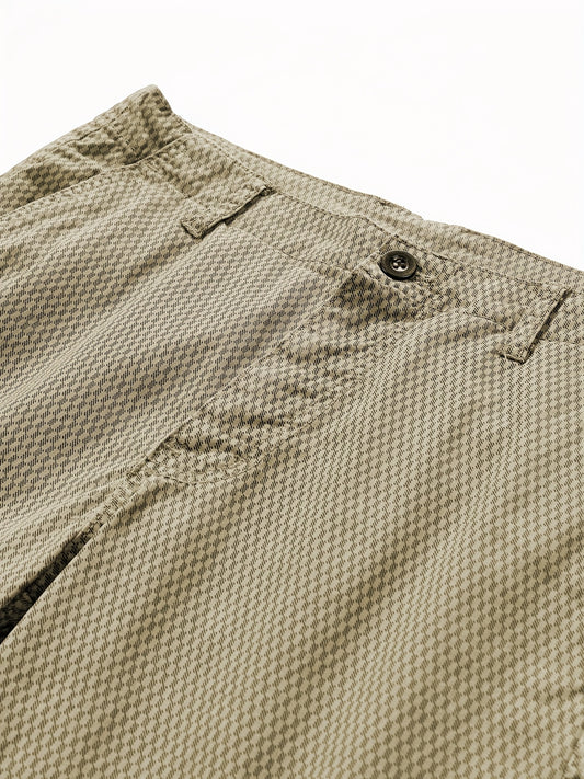 Men'S Casual Cargo Shorts with Striped Design, Elastic Waistband & Multiple Pockets - Beige/Black Regular Fit for Outdoor, Sports & Casual Attire (Belt Not Included), Outdoor Apparel, Functional Pockets, Nonelastic Fabric
