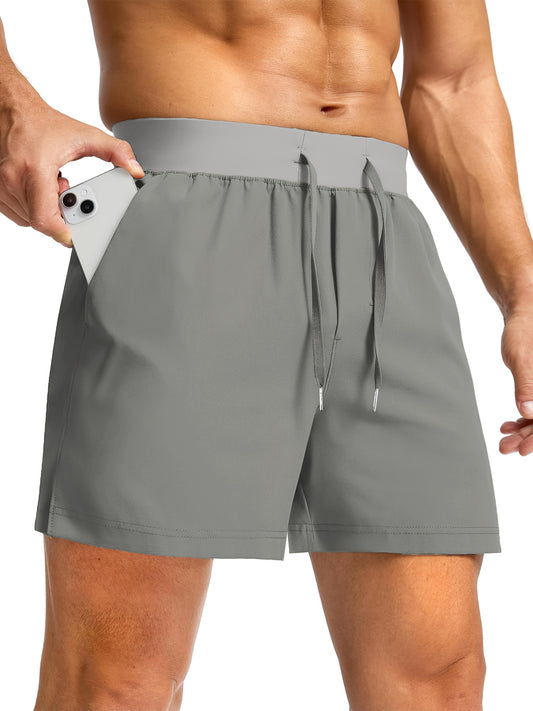 Men'S Light Gray Running Shorts with Zipper Pockets - Adjustable Drawstring, Quick-Dry Athletic & Casual Shorts for Gym, Training, Hiking, and Everyday Wear