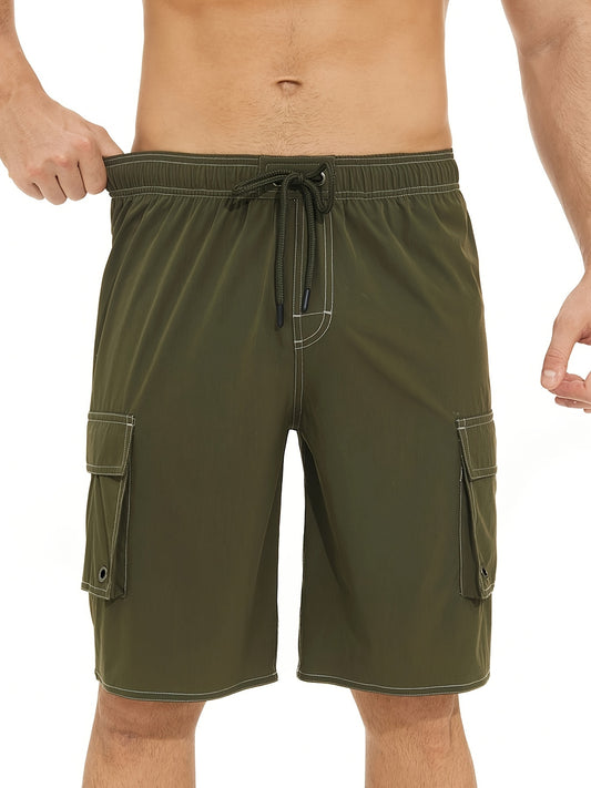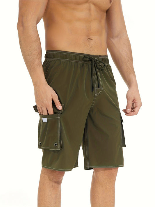 Men'S Big & Tall Quick-Dry Swim Trunks - Olive Green Beach Shorts with Adjustable Drawstring, Pockets, and Durable Polyester Fabric for Summer, Summer Swimwear | Adjustable Drawstring Shorts | Quickdry Material, Bathing Suits