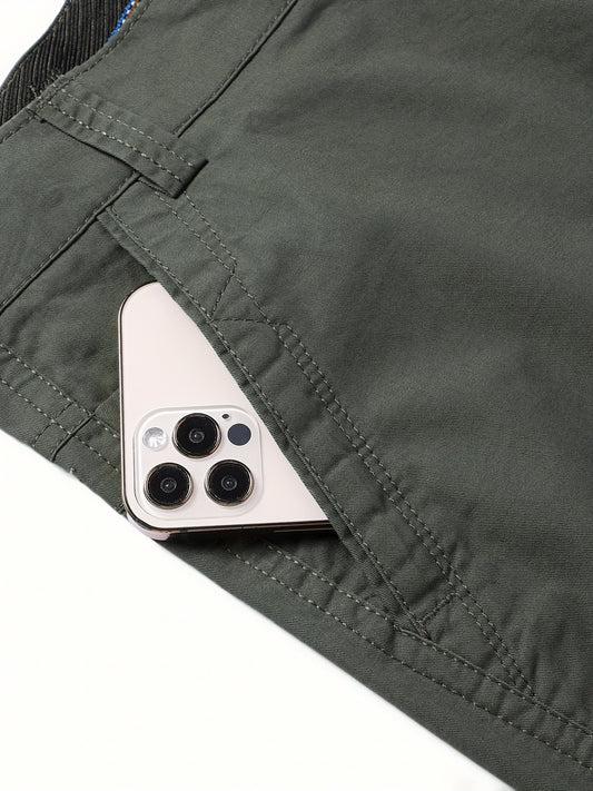 Men'S Heavy-Duty Work Shorts - Non-Stretch Fabric with Multiple Utility Pockets, Adjustable Button Closure - Black Cargo Shorts for Construction, Hiking, Everyday Casual Wear - Non-Stretchy Office & Outdoor Pants, Hiking Appa