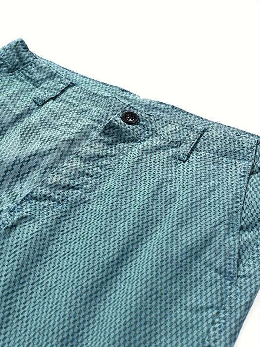 Men'S Slim-Fit Casual Summer Shorts with 3D Digital Print - Light Blue, Button Detail, Non-Stretch Fabric, Perfect for Beach or Poolside Relaxation, Beach Shorts | Button Detail Shorts | Nonstretch Fabric