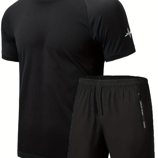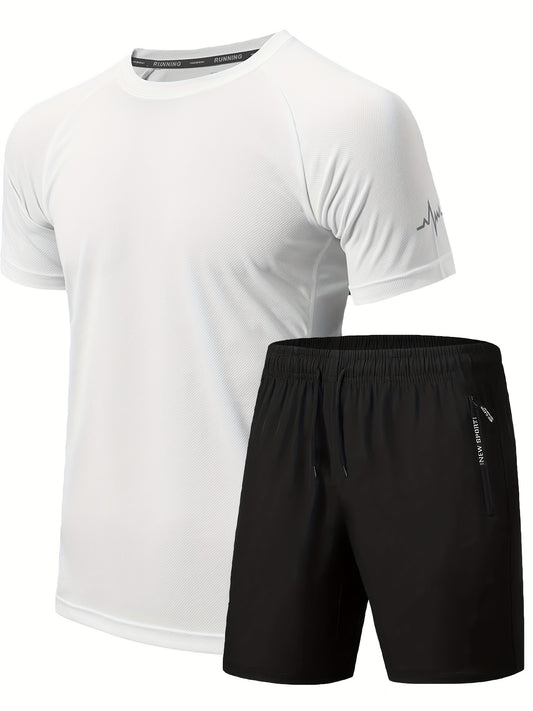 Men's 2Pcs Outfit, Solid Workout Short Sleeve T-shirt & Drawstring Shorts For Basketball Football Exercise Training Running Gym