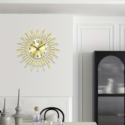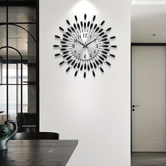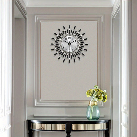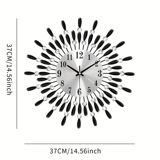 1pc 14.56 Inch Black Small Wall Clock For Living Room Decor, Modern Metal Wall Clocks For Kitchen Bedroom Office Decor, Non-Ticking Quiet Wall Clock Easy To Read