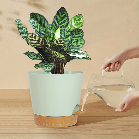 1 Set, Green Plant Pots Set, Self Watering Plastic Planters With Deep Reservior And High Drainage Holes For Indoor Outdoor Flowers Plants, Creative Pots, Super Beautiful Flower Pot, Indoor Outdoor Home Decor Garden Patio