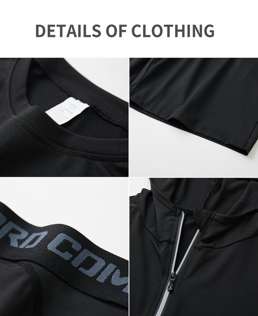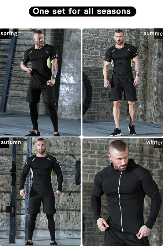 Xinso Prince 5pcs Men's Zip Up Hooded Jacket & Compression T-shirt & Long Sleeve Workout Top & Shorts & Leggings For Fitness