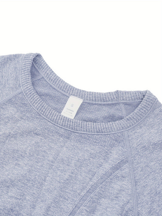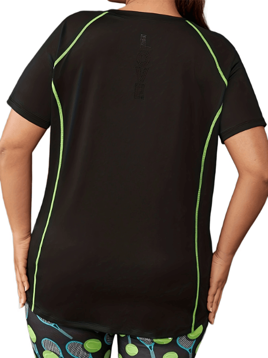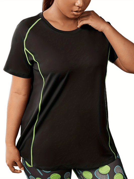 Plus Size Women's High-Elasticity Sport T-Shirt - Breathable Round Neck Short Sleeve Yoga & Studio Workout Top, Machine Washable Solid Color Athletic Tee, Workout Clothes, Gym Clothing, Casual Activewear, Durable Material, Pe