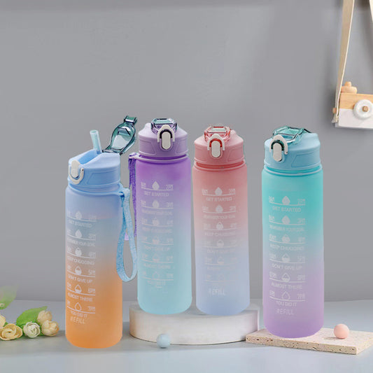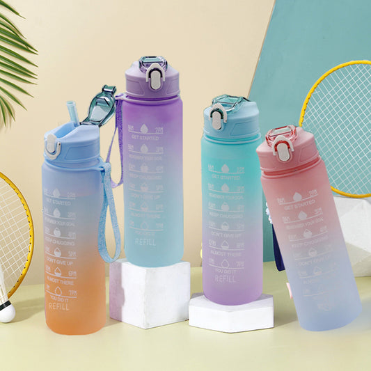 1pc Gradient Color Portable Water Cup with Silicone Straw and Scale - Perfect for Outdoor Sports and Fitness
