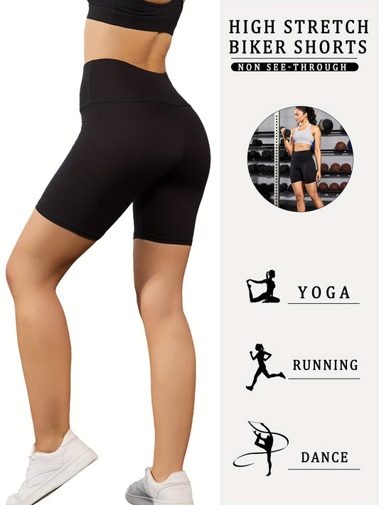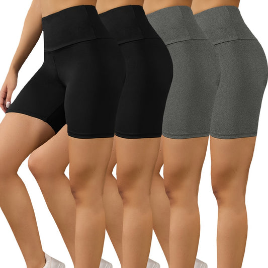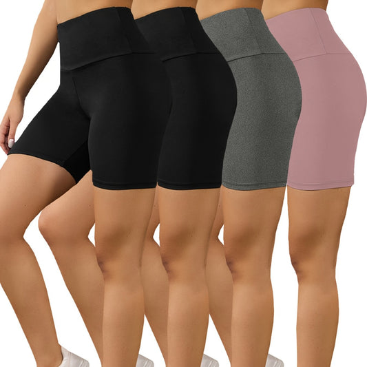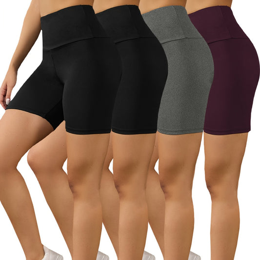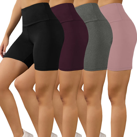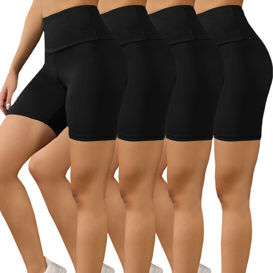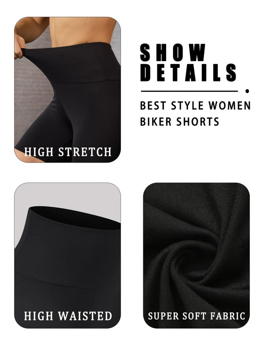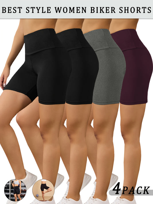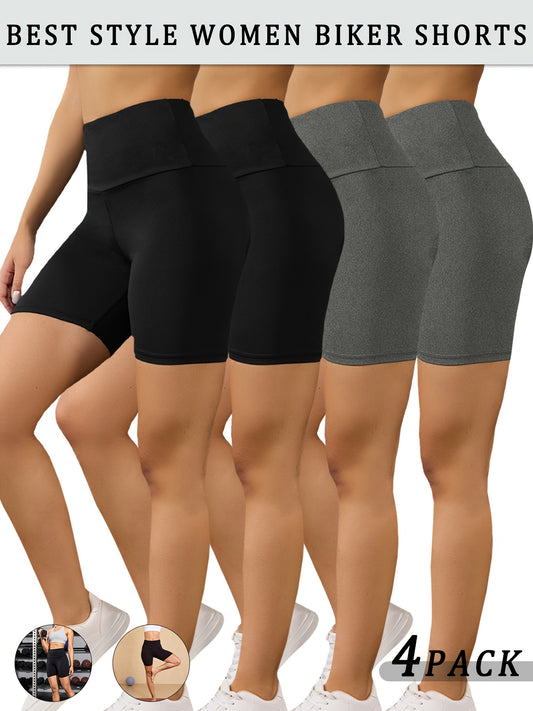 4-Pack High Waisted Biker Shorts for Women, 92% Polyester 8% Spandex, Solid Color, Summer Sports Knit Fabric, Stretchy No-See-Through Workout Yoga Athletic Shorts, Activewear