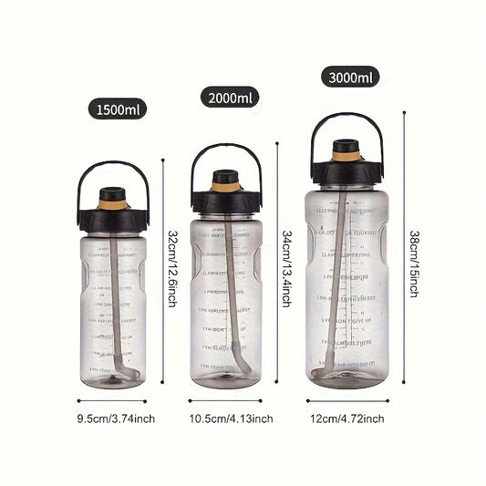 1pc, Large Clear Plastic Water Bottles - Motivational Sports Water Cups for Camping, Hiking, Fitness, and Home Kitchen - Perfect Birthday Gifts - 50.7oz/67.6oz/101.4oz