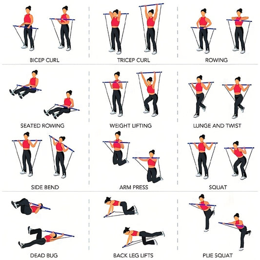 1pc Pilates Bar Kit With Resistance Bands, Stainless Steel Exercise Stick, For Women & Men, Home Gym Workouts Squat Yoga Pilates & Body Shaping