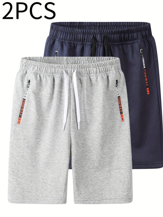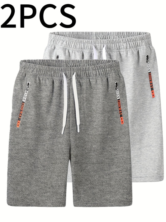 2pcs Men's Casual Outdoor Shorts - Summer Men's Casual Shorts with Zipper Pockets, Minimalist Multi-Pocket Design for Daily Wear, Running, Fitness & Travel, 100% Polyester Knit Fabric, Drawstring Waistband, Machine Washable,