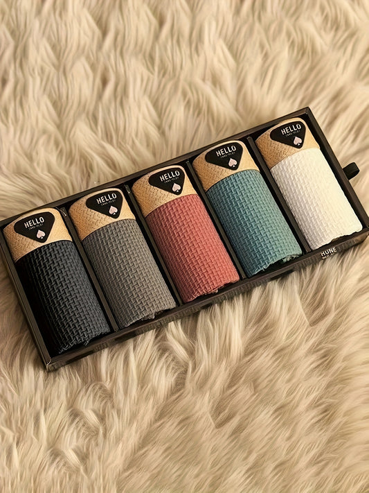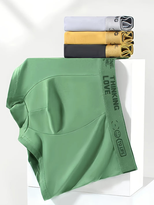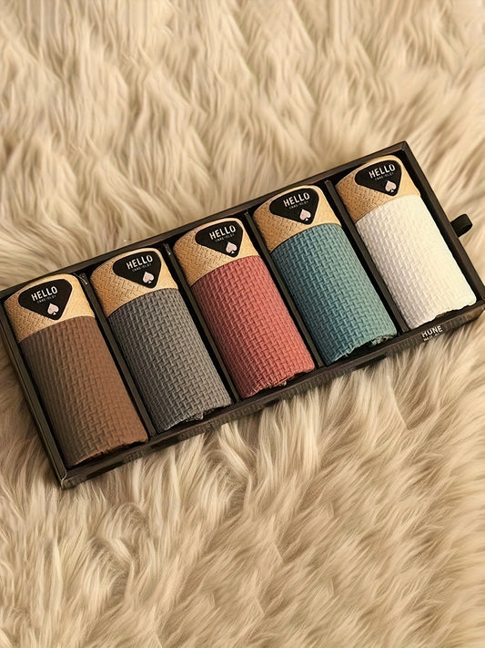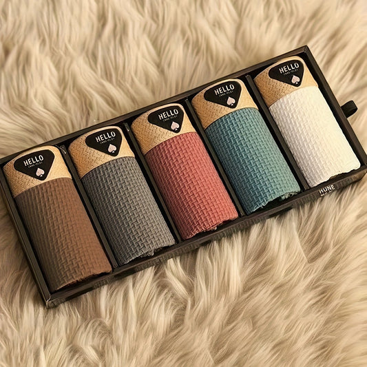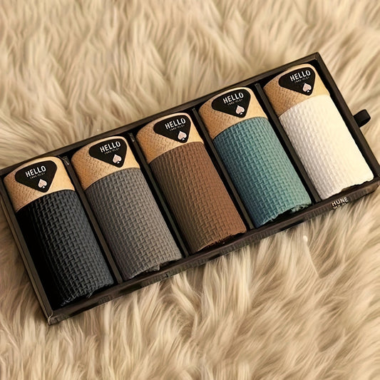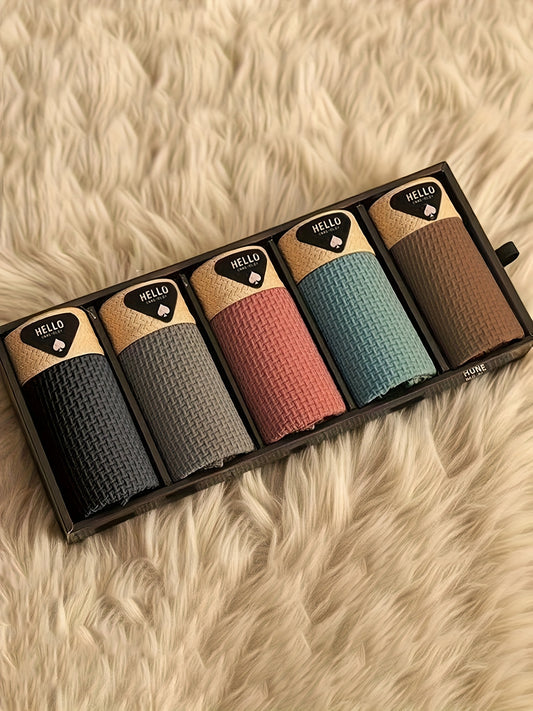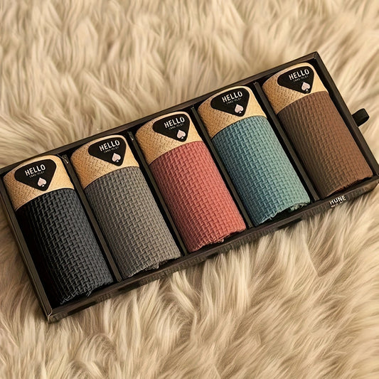 5-Pack Men's Ice Sliky Fiber Fabric Seamless Boxer Briefs for Spring, Summer, Autumn & Winter - Multi-Color Sports and Casual Underwear, Breathable Elastic 4-Corner Boxers in Various Styles for Daily Wear