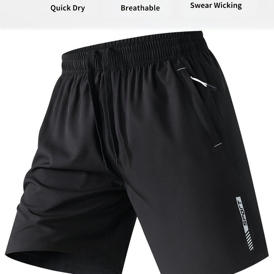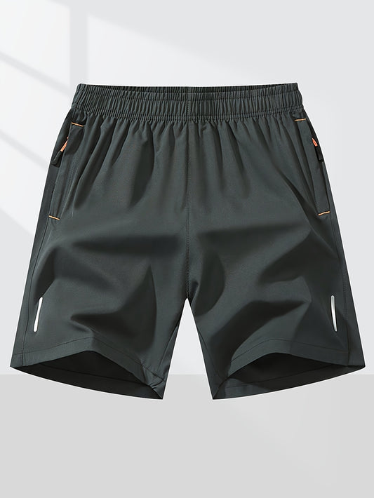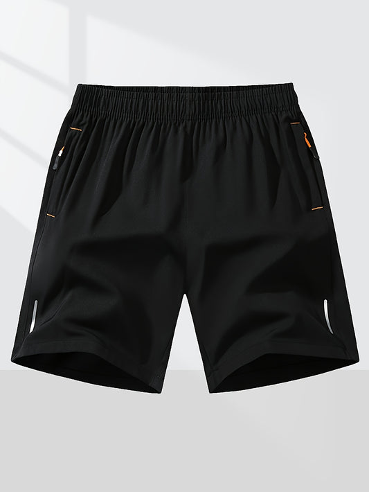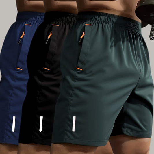 Three-Pack Men'S Athletic Shorts, Featuring a Loose Fit, Made from Comfortable Sports Fabric, with Zippered Pockets, Solid Color, Slight Stretch, And Reflective Strips on The Legs, Suitable for Night Running, Casual Beach Wea