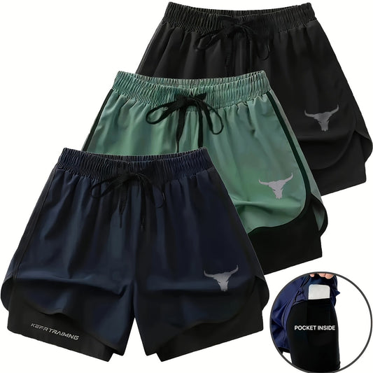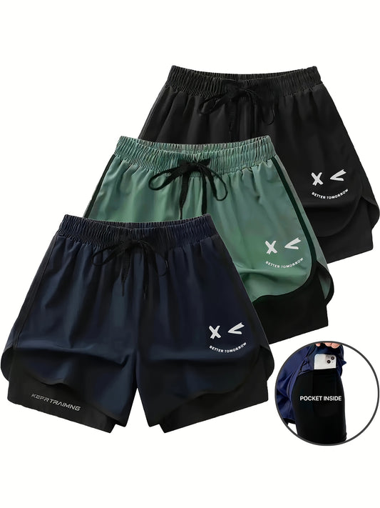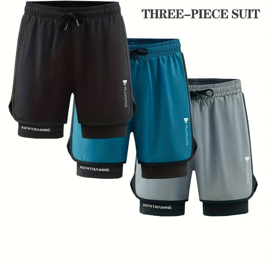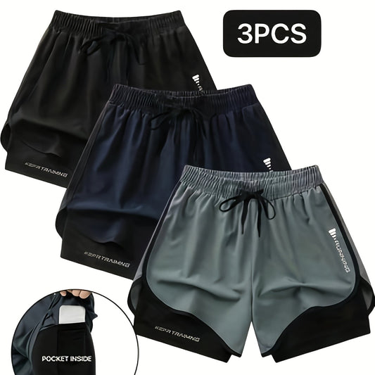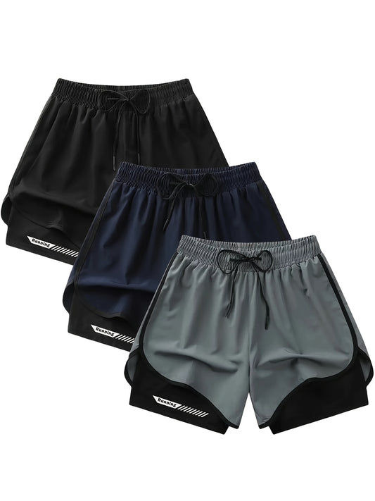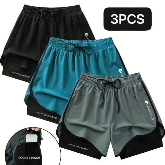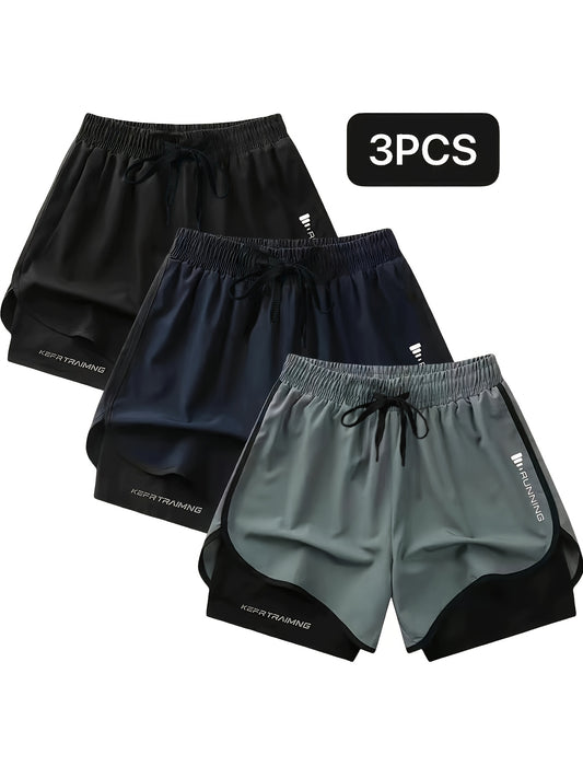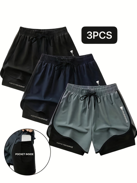 3pcs Men's Quick-Dry Lightweight Running Shorts, with Elastic Drawstring Waist and Side Pockets - Mo, Running Shorts for Men, Mens Mid Length Wide Leg Shorts, Men Workout Shorts, Gym Shorts Above Knee, Mens Shorts with Liner,