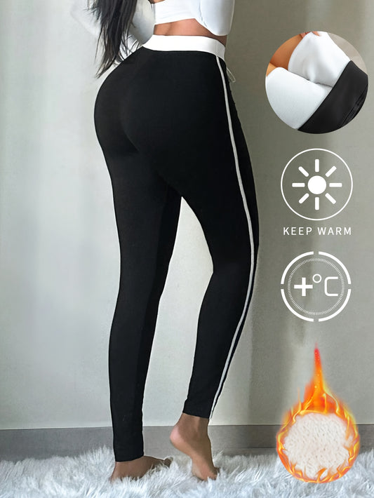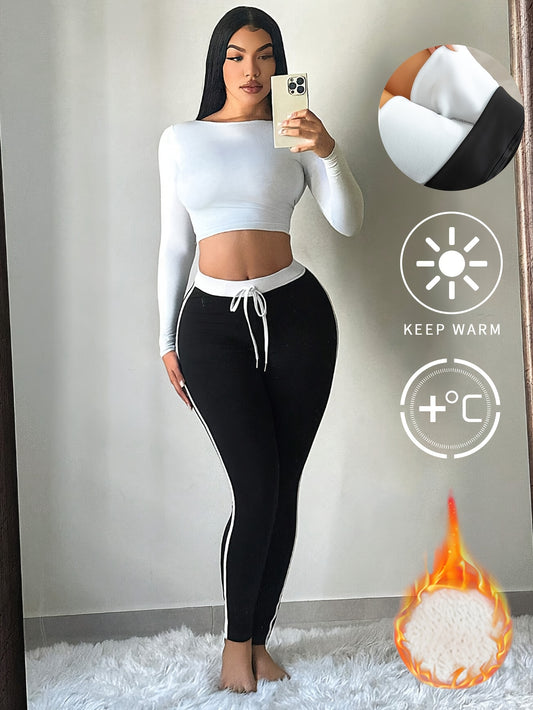 Women'S High-Waisted Thermal Leggings - Extreme Cold Weather Pants with Drawstring Waist, Non-Slip Grip, Stretchy Fleece-Lined Winter Pants for Gym, Running, Everyday - Black/White Color Block Design - Easy-Care Athletic Legg