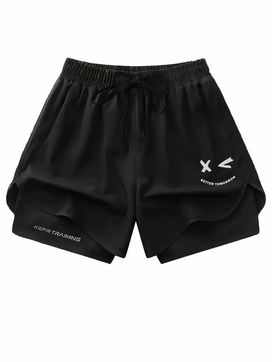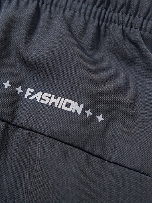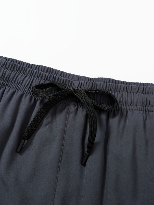 Men's Lightweight Polyester Casual Shorts with Lettering - Breathable Summer Beach & Outdoor Sports Shorts, Regular Fit, Pockets, Hand Wash or Dry Clean, Athletic Leisure Shorts | Modern Casual Shorts | Functional Pockets Des