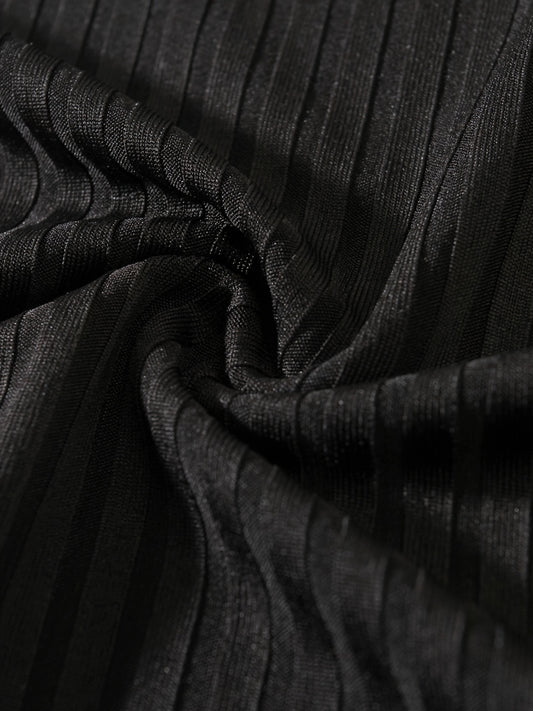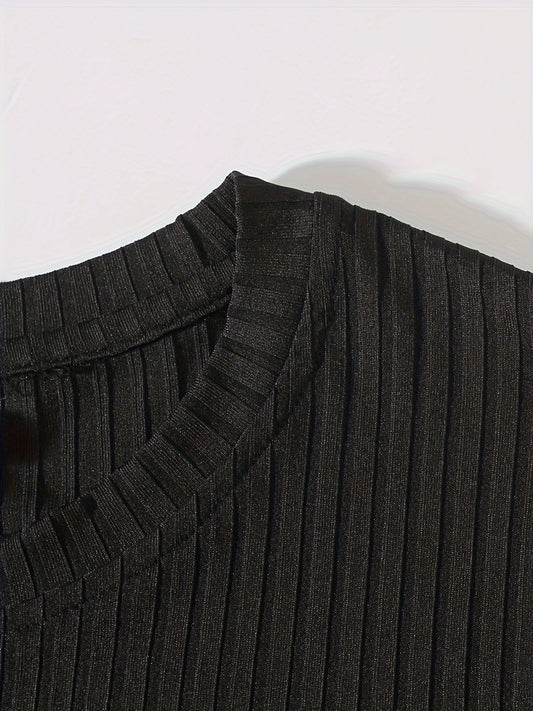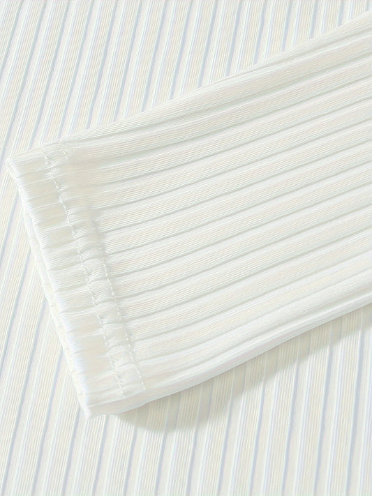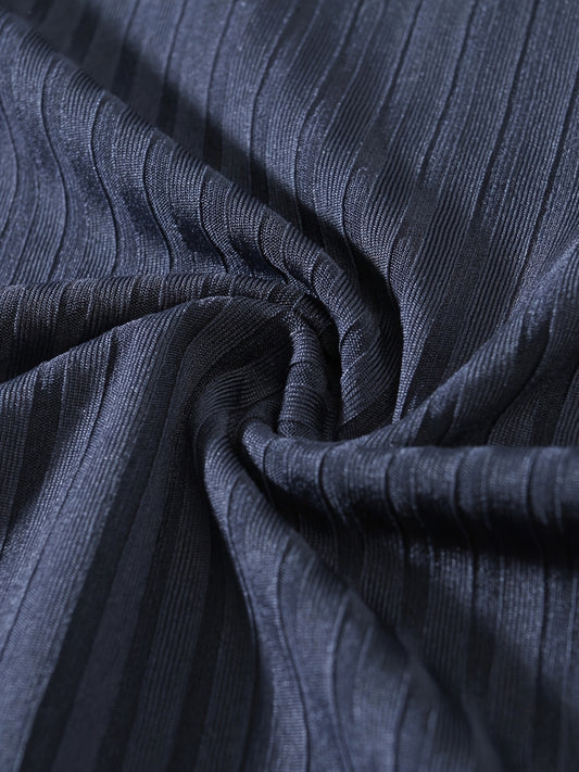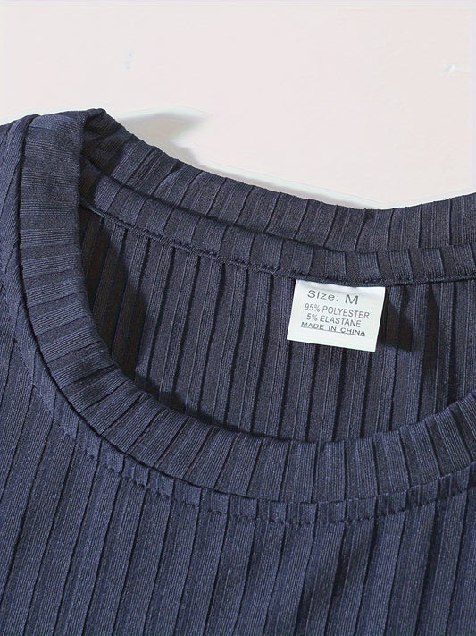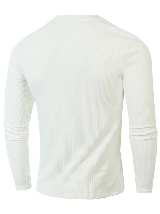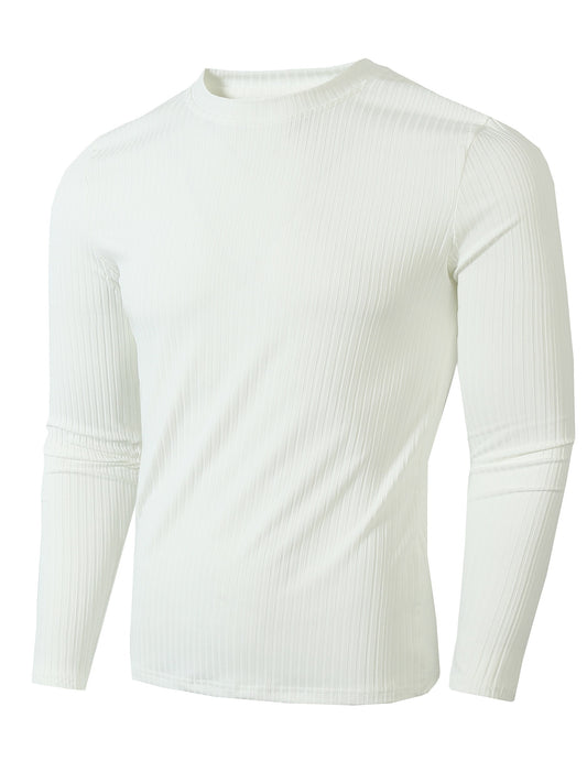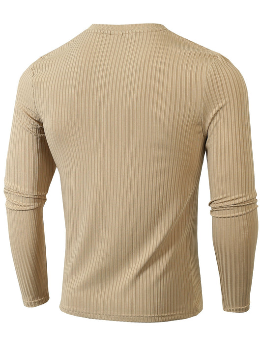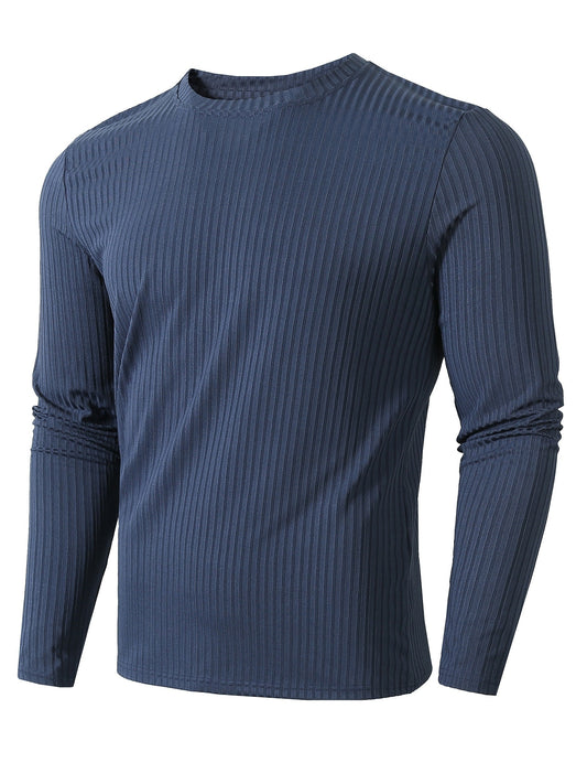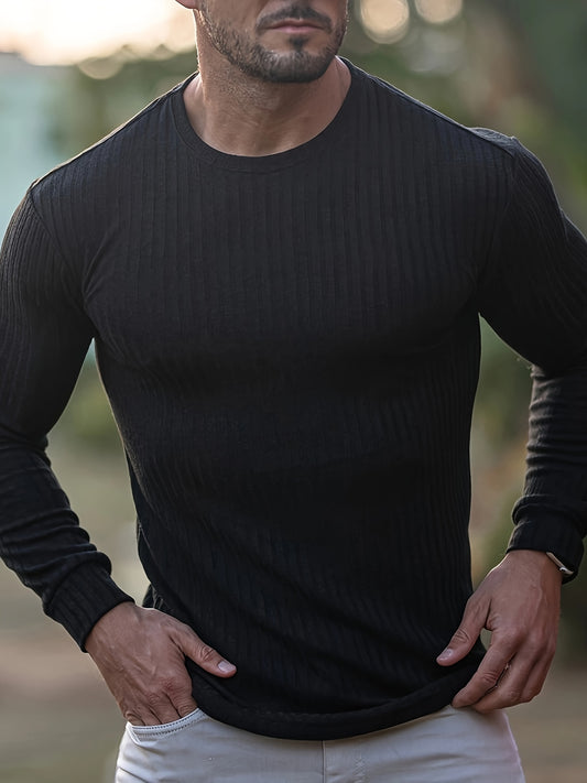 Ribbed Men's Casual Stretch Breathable Lightweight Long Sleeve Round Neck T-shirt For Spring Fall, Running Training