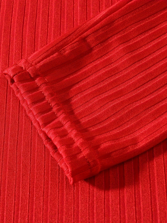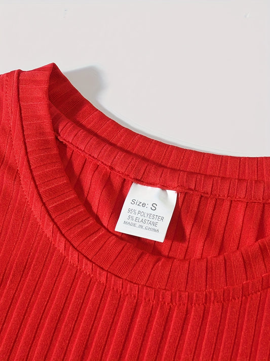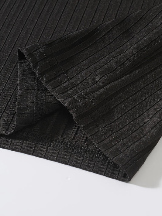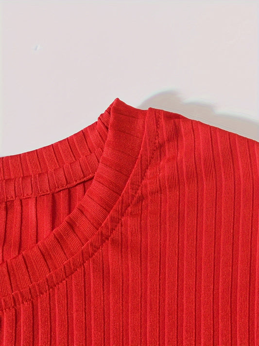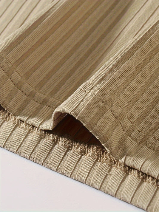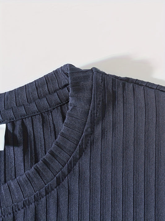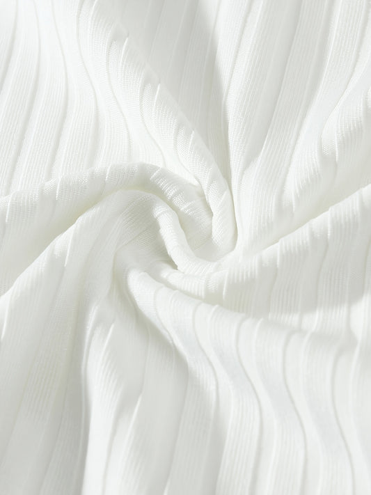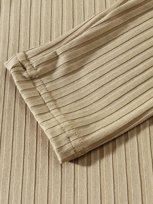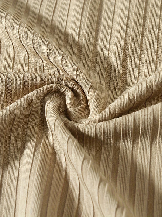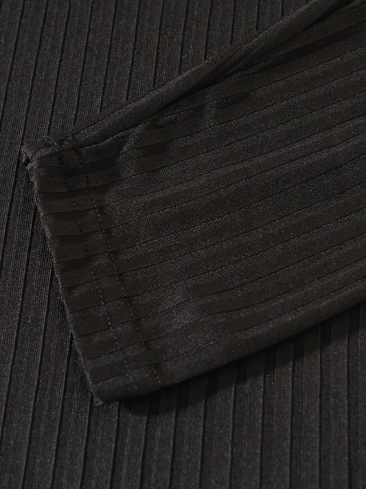 Ribbed Men's Casual Stretch Breathable Lightweight Long Sleeve Round Neck T-shirt For Spring Fall, Running Training