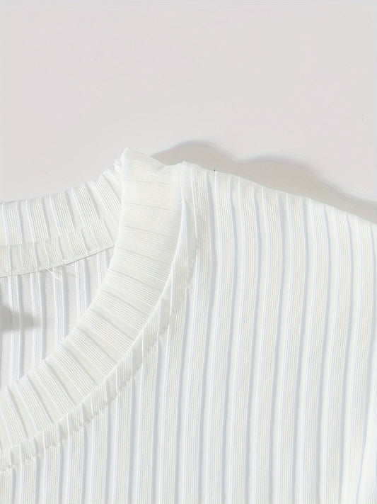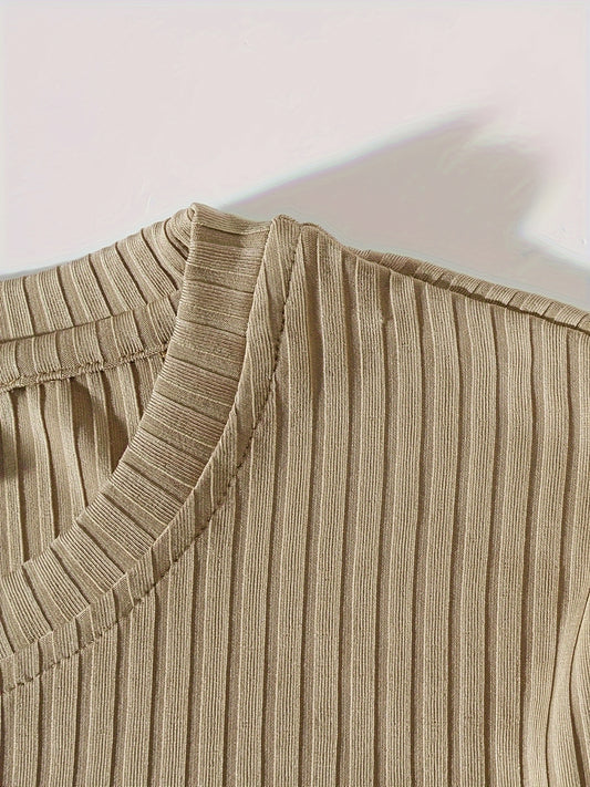 Solid Color V Neck Blouse, Casual Short Sleeve Top For Spring & Summer, Women's Clothing