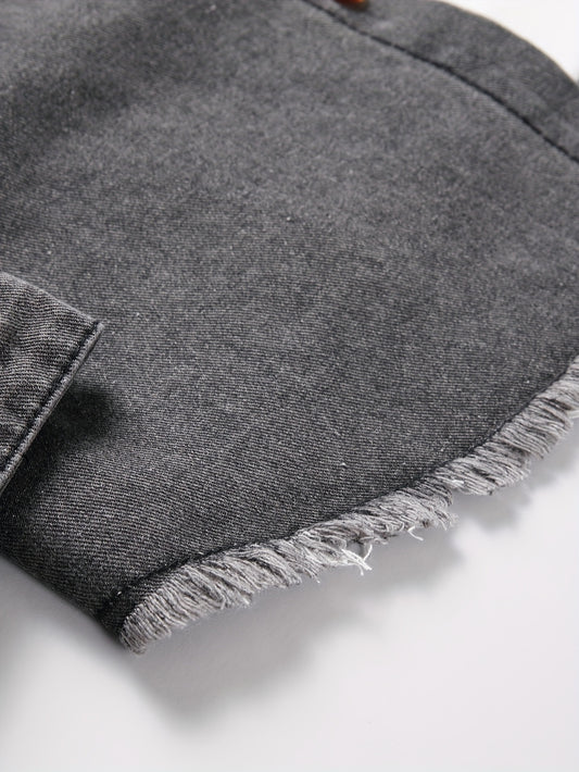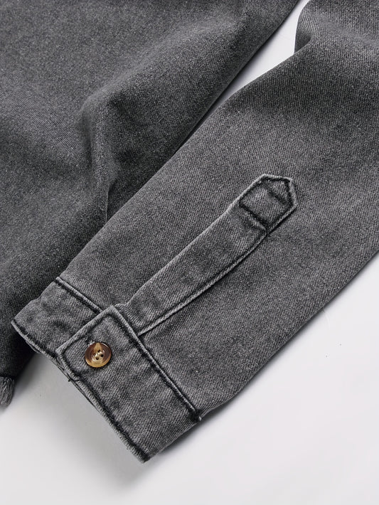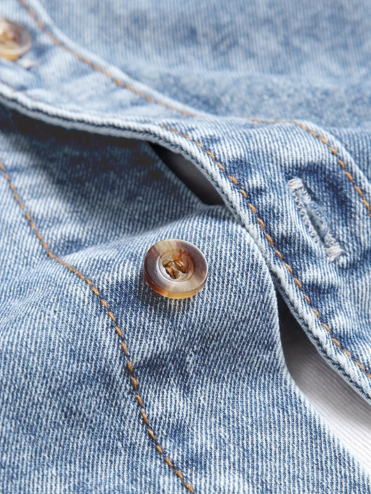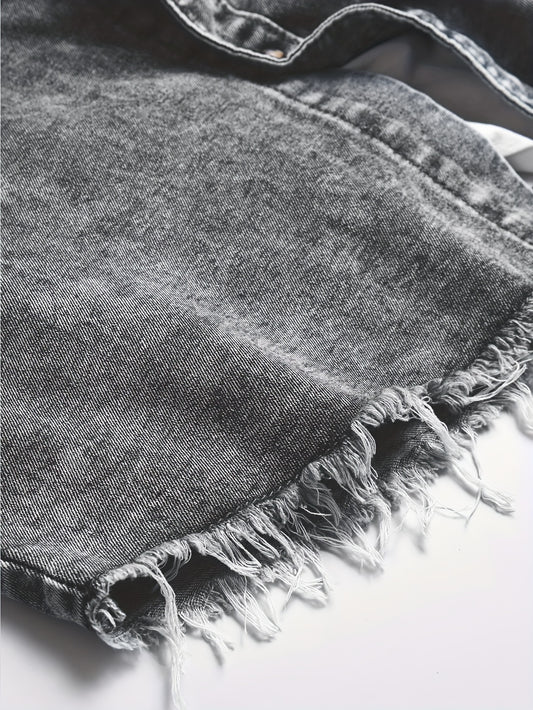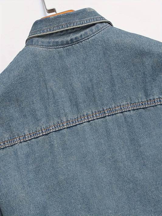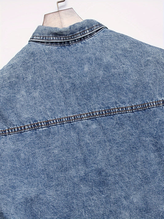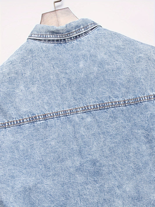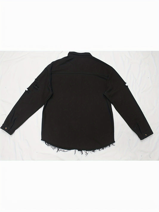 Men's Trendy Ripped Design Casual Button Up Long Sleeve Denim Shirt, Men's Clothes For Spring Summer Autumn, Tops For Men