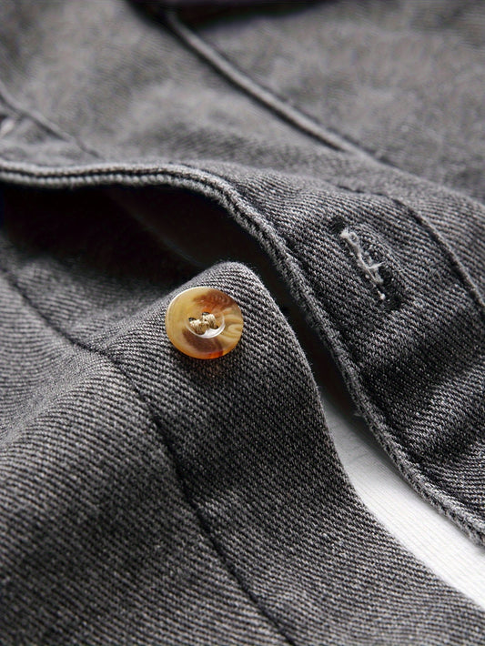 Solid Color Men's Cotton Long Sleeve Button Up Shirt, Men's Spring Fall Lapel Top