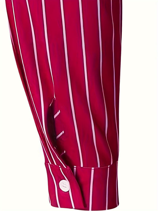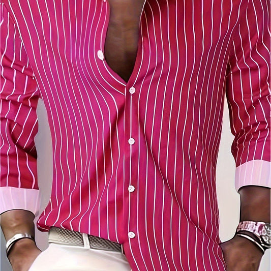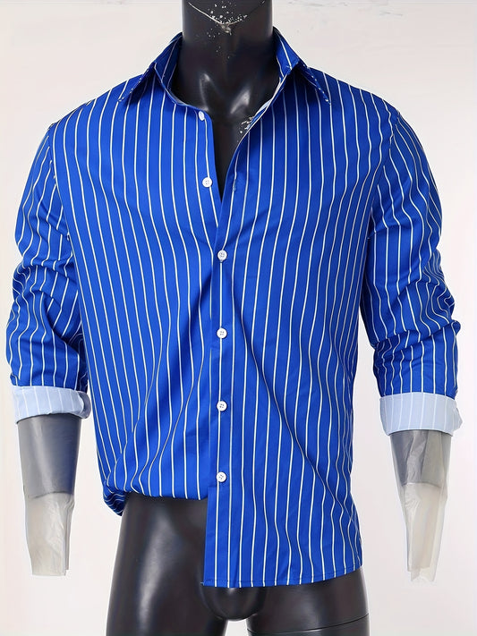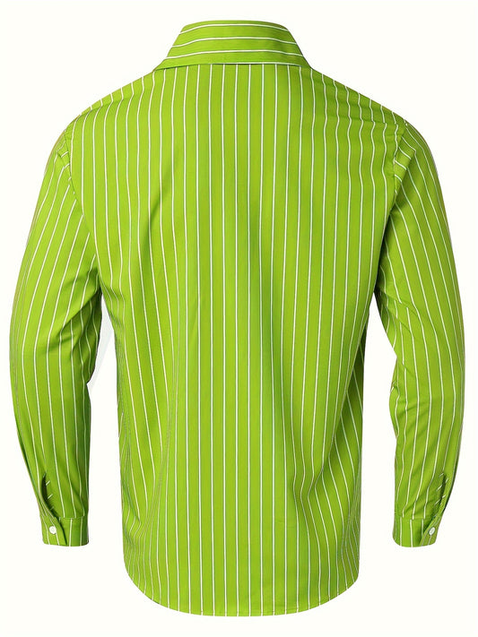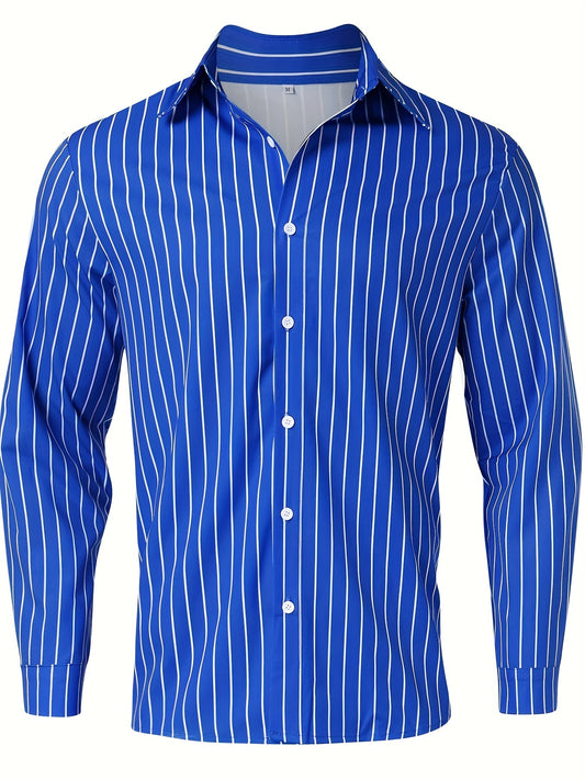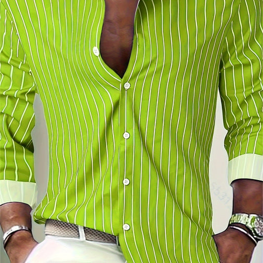 Casual Striped Men's Daily Thin Long Sleeve Button Up Shirt For Spring Summer Outdoor, Gift For Men
