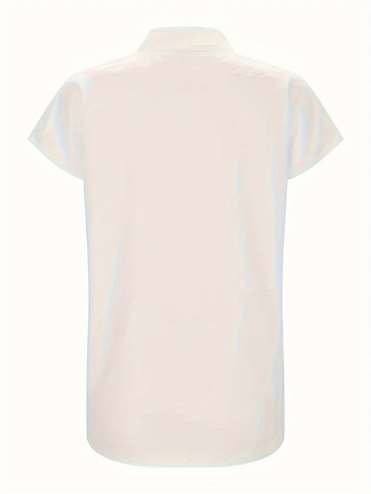 Solid Color V-neck Loose Blouse, Elegant Short Sleeve Blouse For Spring & Summer, Women's Clothing