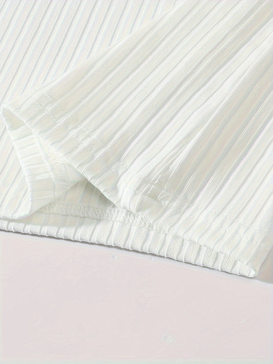 Boat Neck Textured Blouse, Elegant Half Sleeve Blouse For Spring & Summer, Women's Clothing