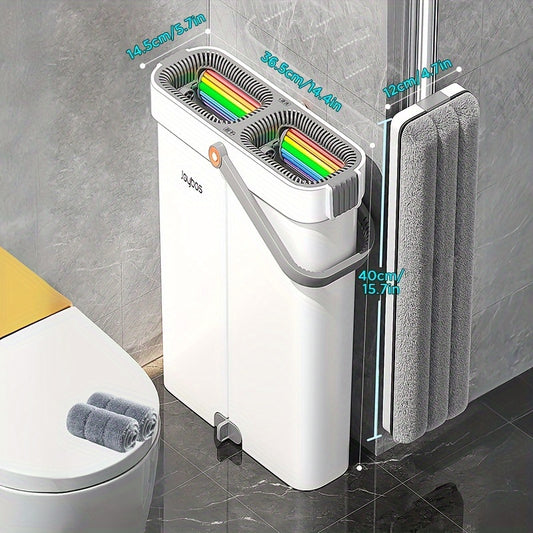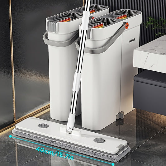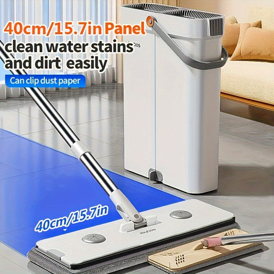 40CM Flat Mop and Bucket With Wringer Set for Home, Wet and Dry Use, Hand-free Wash Mops With 2 Washable Microfiber Pads for All Floor Types and Windows, Christmas Gift
