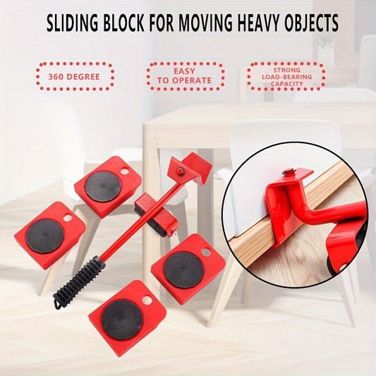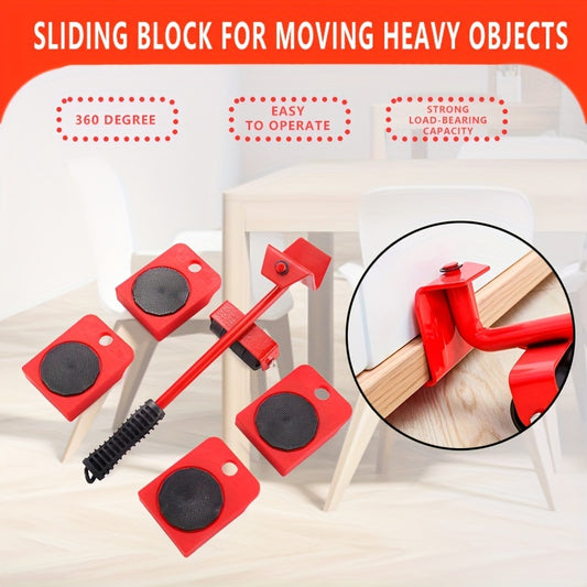 5pcs Furniture Slides Kit, Furniture MoveRoller Tools, 360 Degree Rotatable Pads, Easily Redesign And Rearrange Living Space Sofa Easy, Plastic And Carbon Steel For Hardwood Floors Carpet With 4 Wheels, Bearing Weight 150Kg,