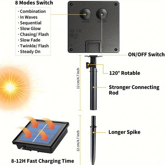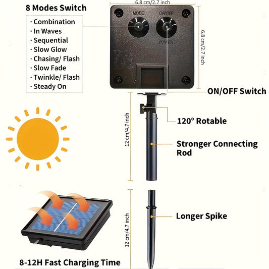 Solar LED Light Path Deck Outdoor Garden Solar String Lights Solar Rope Lights Outdoor Lighting strips Led Garland Lights For Wedding Party Christmas Halloween Decoration Garden Stair with Smart Light sensor 8 Light Modes