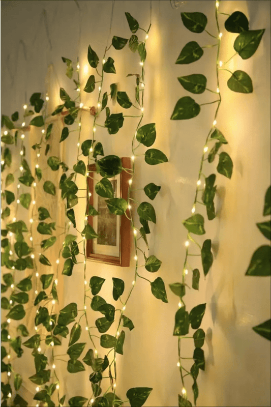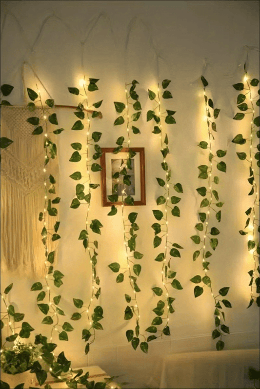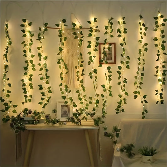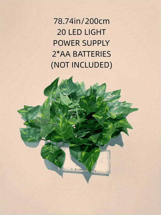 2m/6.56ft 20 LED Green Leaf String Lights Garden Lights, New Year Decorations String Lights, Wedding Thanksgiving Christmas Decoration String Lights (Batteries Not Included)