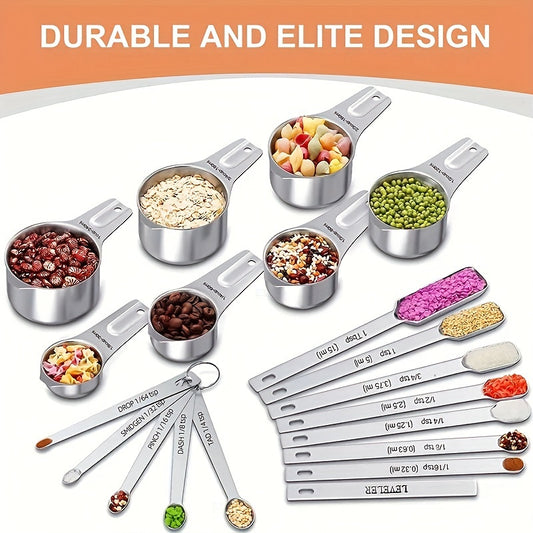 7pcs Set 20pcs Set Measuring Cup + Measuring Spoon Set 7 Stainless Steel Measuring Cups Set + 1 Level And 5 Mini Measuring Spoons for Cooking And Kitchen Measuring Spoons And Measuring Cups Baking Supplies Baking Tools
