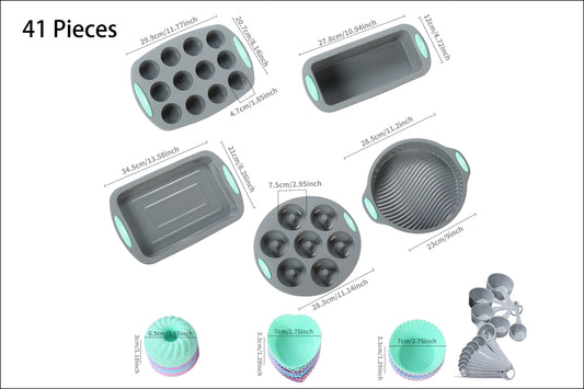 45pcs/set, Silicone Baking Set, Nonstick Bakeware Set Baking Cookie Sheets Cake Muffin Bread Pan, Loaf Pan, Cake Pan, Pizza Pan, Mini Cupcake Mold, Bundt Pan, Charlotte Cake Pan, Measuring Cup And Spoon, Baking Tools