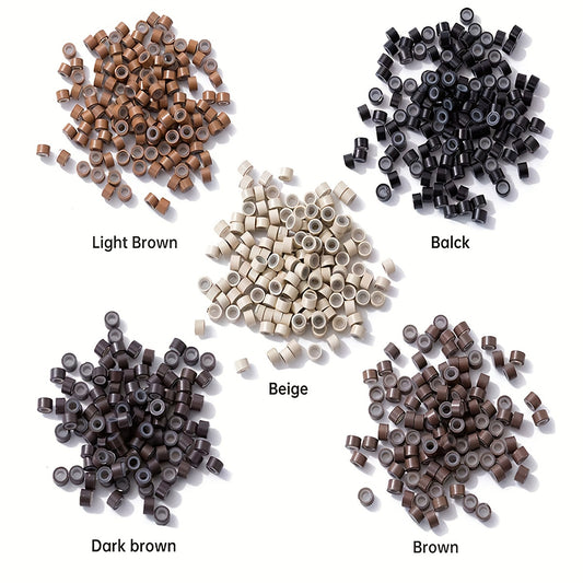 Hair Extentions Tools Kit 2500pcs Micro Rings Links Beads, 5mm Silicone Lined Beads For Human Hair Extensions Tool-Multi-colored With 1 Pcs Pulling Hook And 1 Pcs Hook Needle