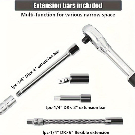 1set 1/4 New Upgrade Wrench Socket Set Hardware Car Boat Motorcycle Bicycle Repairing Tool