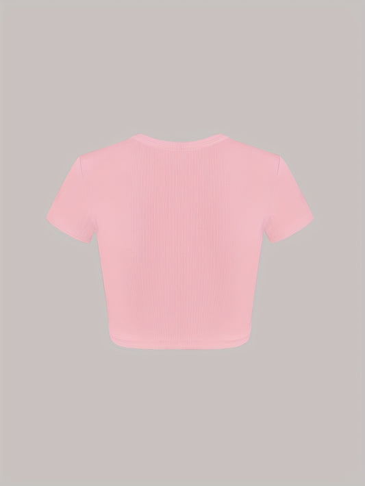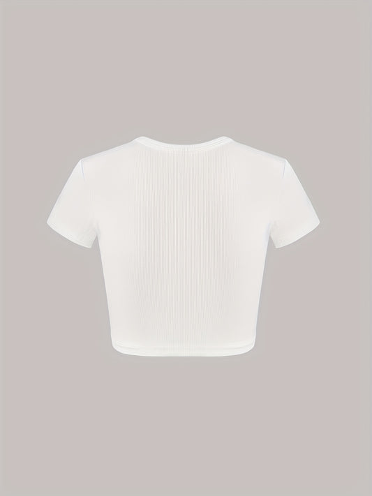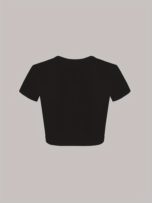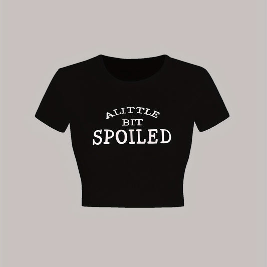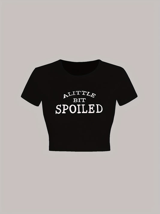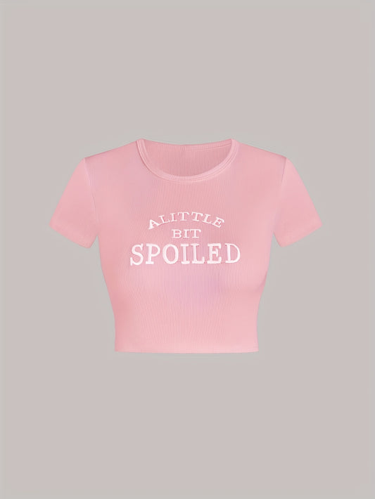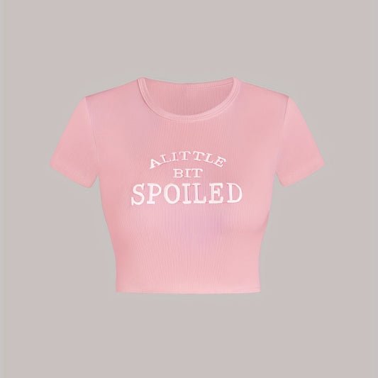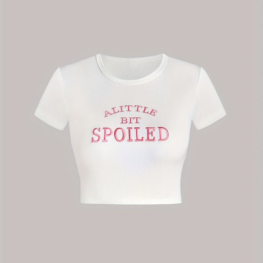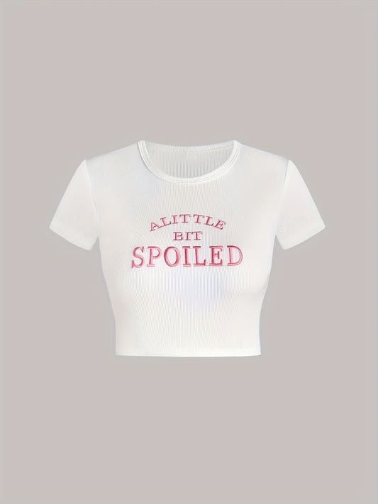 Letter Embroidery Crop T-Shirt, Y2K Short Sleeve T-Shirt For Spring & Summer, Women's Clothing