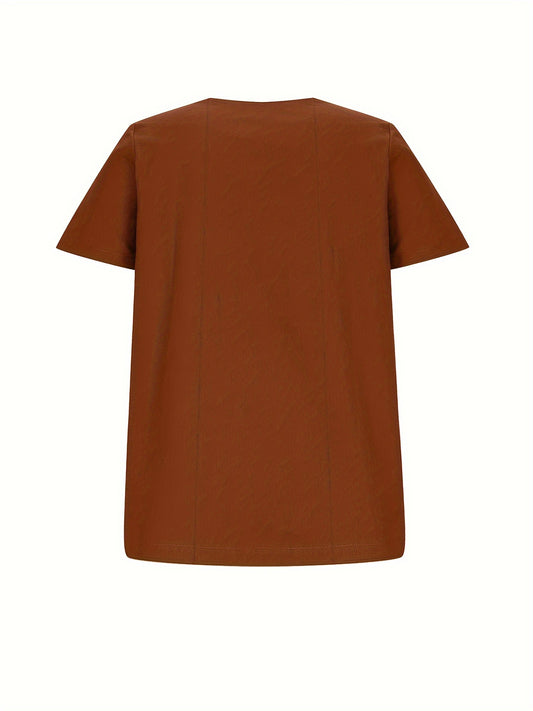 Paisley Print Notched Neck T-Shirt, Casual Short Sleeve T-Shirt For Spring & Summer, Women's Clothing