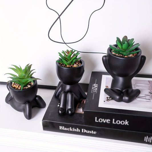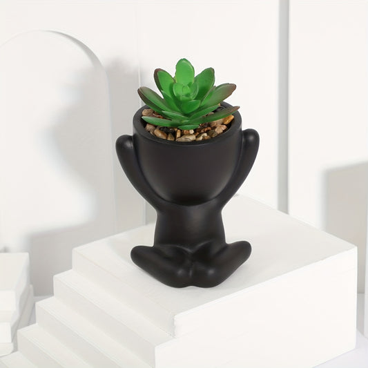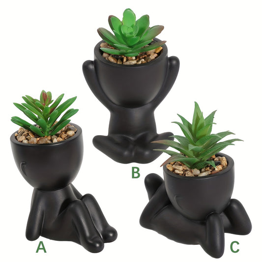 1pc Charming Artificial Succulent Plant in Black Pot - Cute Mini Faux Greenery for Tabletop Decor, Perfect for Home, Office, Dorm | Ideal for Weddings, Parties, Spring & Summer Events | Versatile Decoration for Living Room, B