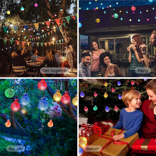 1pack, 20/50/100 LED Large Light Bulb, Solar Crystal Ball, Bubble Light String, Solar Outdoor Light Strip, 8 Lighting Modes, Solar Light String For Garden, Camping, Party, Independence Day, Christmas, Wedding, Ball, Birthday,