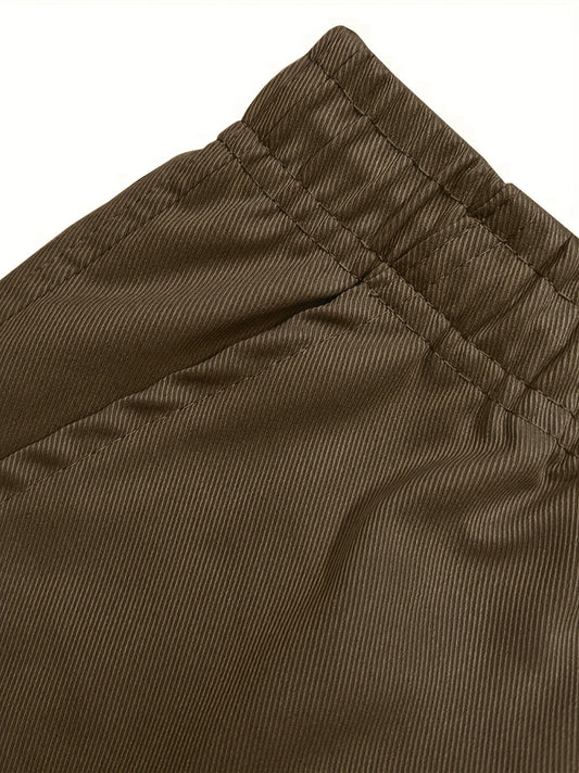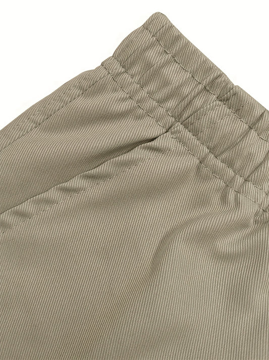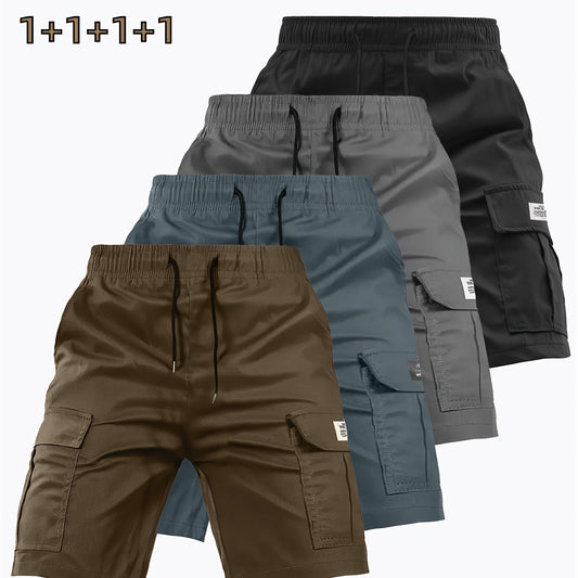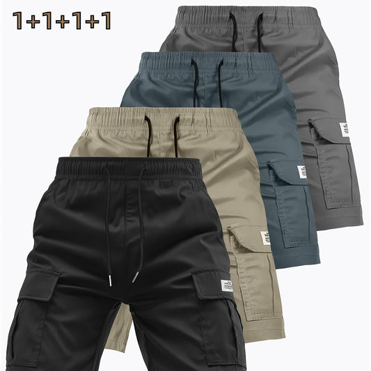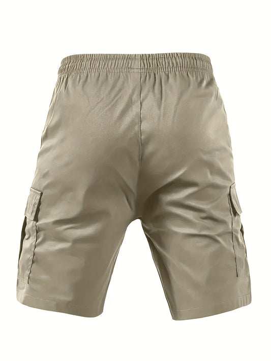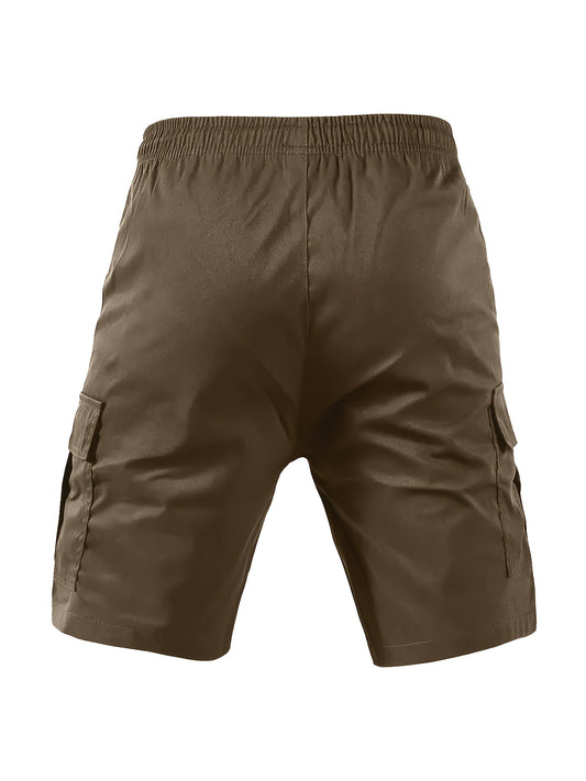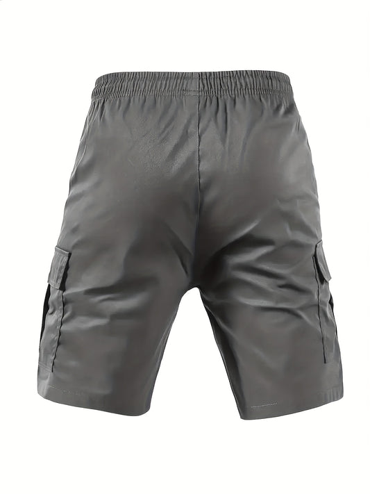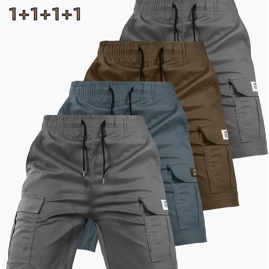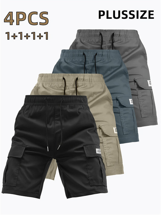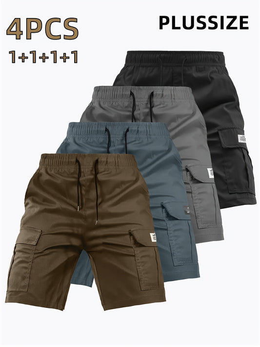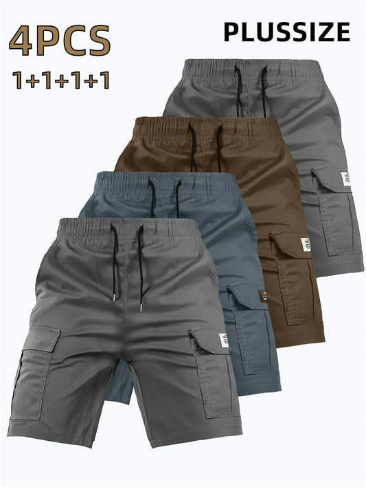 4pcs Men's Plus Size Casual Cargo Shorts - Multi-Pocket Elastic Drawstring Waist, Lightweight Breathable Fabric for Spring/Summer, 4 Colors (Olive/Charcoal/Gray/Navy), Summer Trousers, Solid Color Design, Multiple Pockets, PL