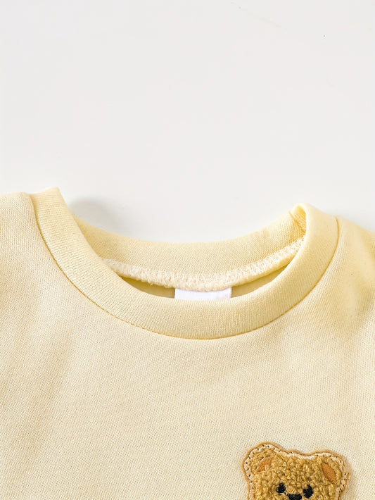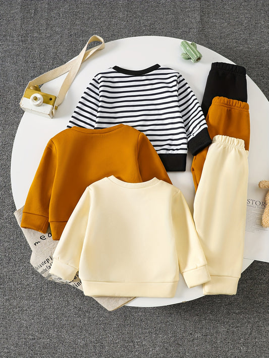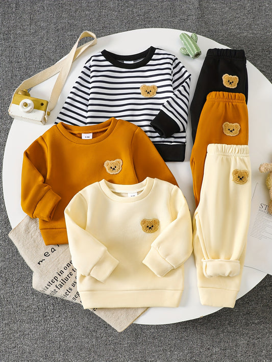 A Set of Three Fleece Hoodies for Baby Boys, Packaged in Six Pieces, Featuring a Cute Bear Patch. Perfect for Outdoor Wear During The Autumn And Winter Seasons, Making It a Great Gift for Children.