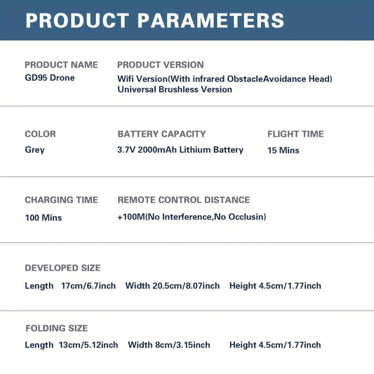 1pc GD95 Quadcopter Drone, Foldable Drone - Easy to Carry, SD HD Dual Camera - Image Stabilization, with Light Flow Hovering And Obstacle Avoidance Function, Birthday Gift - Holiday Gift