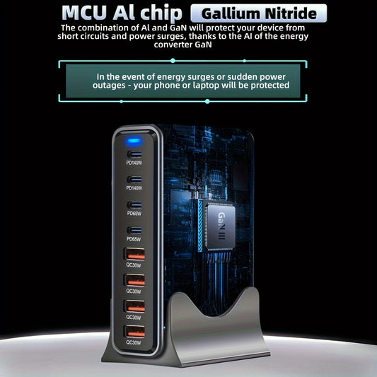 1pc EU desktop charging block 530w 8-port in one Compatible with Macbook Pro M4 MAX140W fast charging Small and portable, suitable for travel, home or office use, support for mobile phones, watches, computers and headphones C